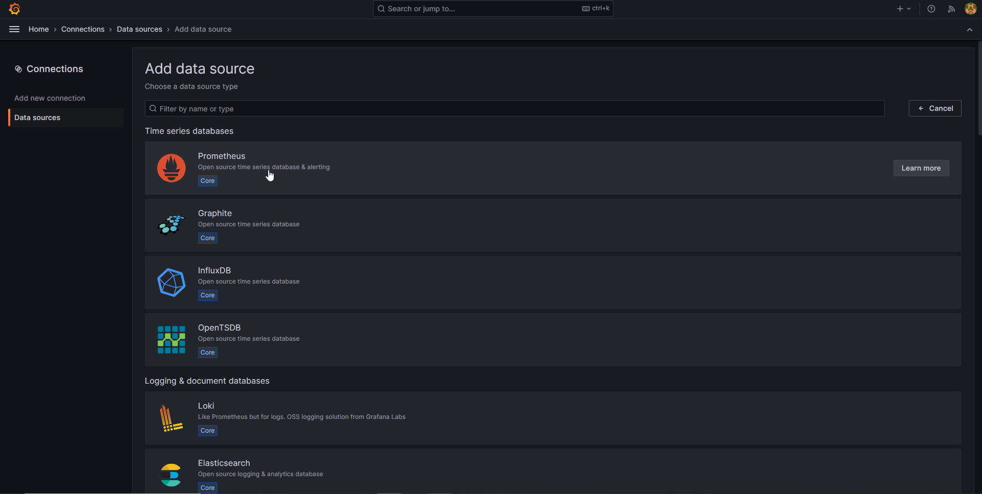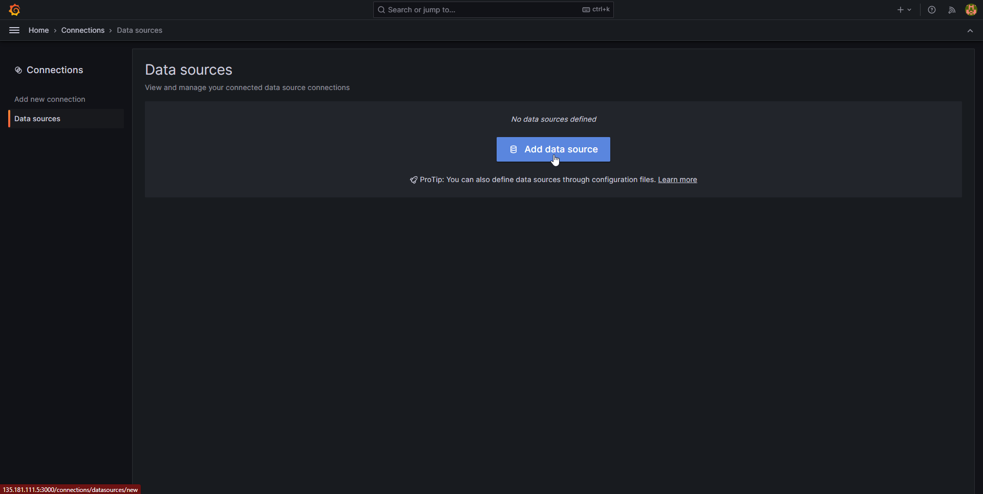 You will need to create a datasource. Navigate to Home->Connections->Data sources